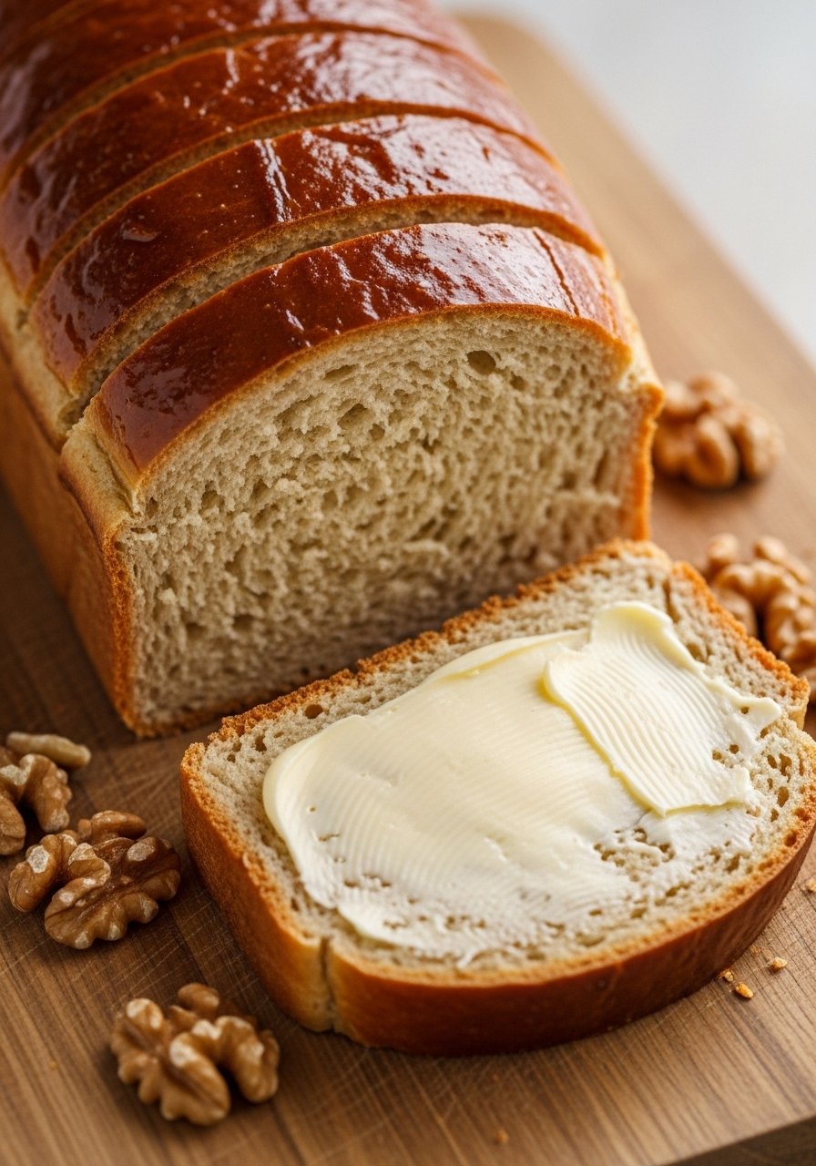 Slice thick and serve warm with butter or a swipe of cream cheese. Garnish with extra chopped walnuts or a dusting of powdered sugar. Store slices in an airtight container at room temperature up to 3 days or freeze for up to 3 months. Reheat gently in the toaster oven for a fresh-baked feel.