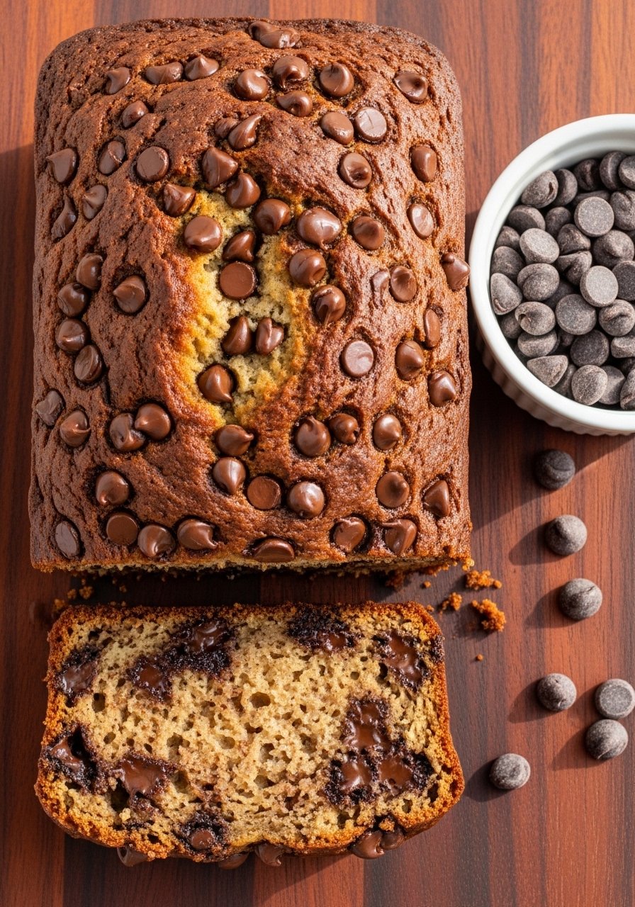 I sprinkle extra chips on top before baking so you get a glossy chocolate finish—use semi-sweet chips for balance.