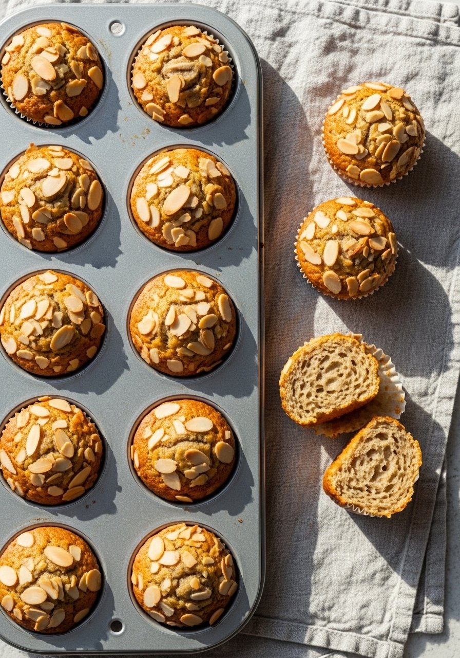 Turn banana bread into grab-and-go muffins that bake faster and are perfect for meal prep. These are tender with crunchy almond slices on top. Great for breakfast or lunchboxes.