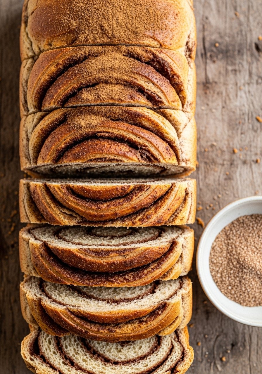 A cinnamon-sugar swirl adds warm spice and a bakery feel. The swirl caramelizes slightly where it meets the pan, giving delightful crunchy edges balanced by a soft center.
