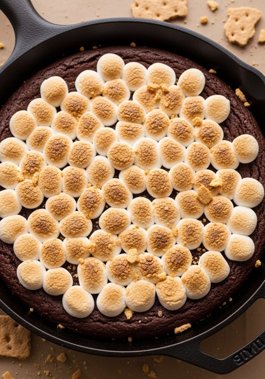This one’s for gatherings: bake the brownie right in a cast iron skillet, top with marshmallows and broil to toast for that campfire s’mores vibe. The edges get chewy and crisp while the center stays gooey—perfect with friends and a scoop of ice cream.