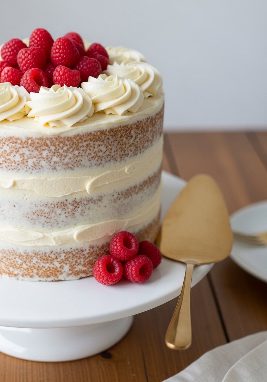 This classic vanilla layer cake is tender, tall, and reliably crowd-pleasing. It’s got a fine crumb with a buttery vanilla flavor and a smooth buttercream that isn't too sweet. Make it for birthdays, showers, or Sunday dessert—anyone who loves a simple, elegant cake will want seconds.