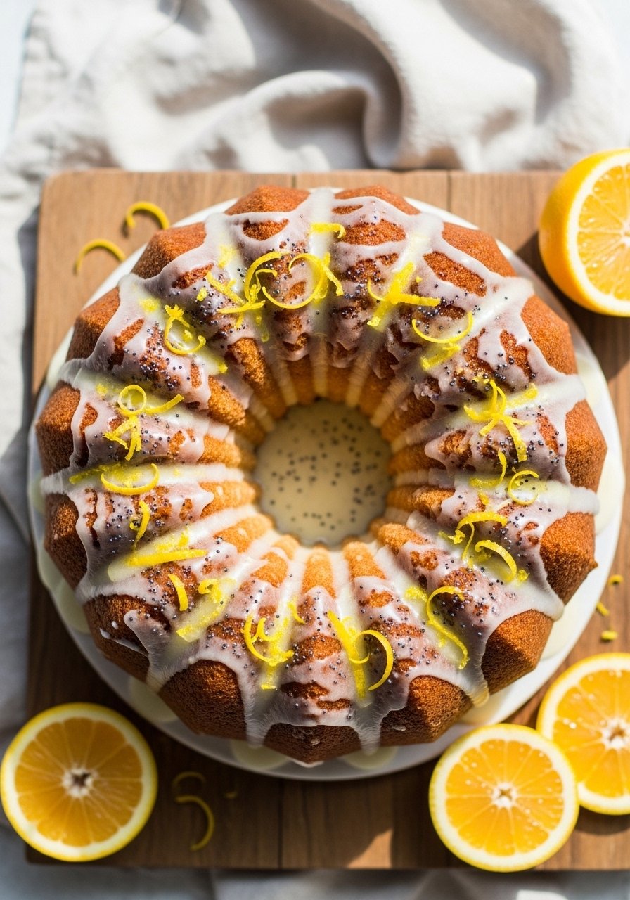Bright, tender, and slightly tangy—this bundt cake is a sunny counterpoint to richer cake recipes. The lemon glaze soaks into the crumb, giving each bite moist pop of citrus and a pleasant crunch from the poppy seeds.