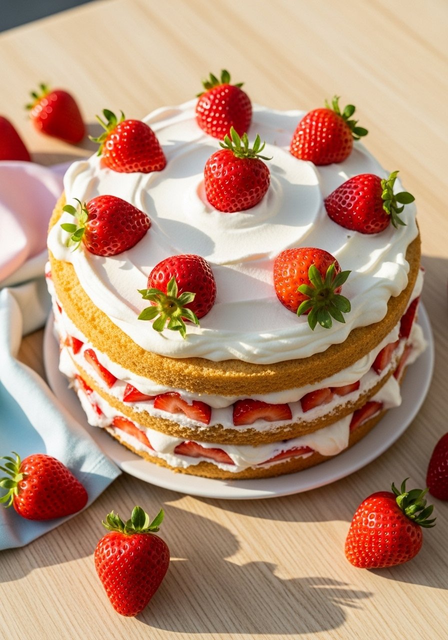 This strawberry shortcake cake captures summer in a slice—light vanilla sponge, whipped cream, and juicy strawberries. It’s simple, fresh, and a go-to for warm-weather gatherings among cake recipes that highlight fruit.