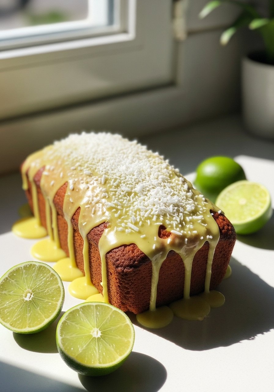 This tropical cake brings crisp lime brightness and toasty coconut texture together. The glaze soaks into the crumb for extra moisture—perfect for brunch or a light dessert after a spicy meal.