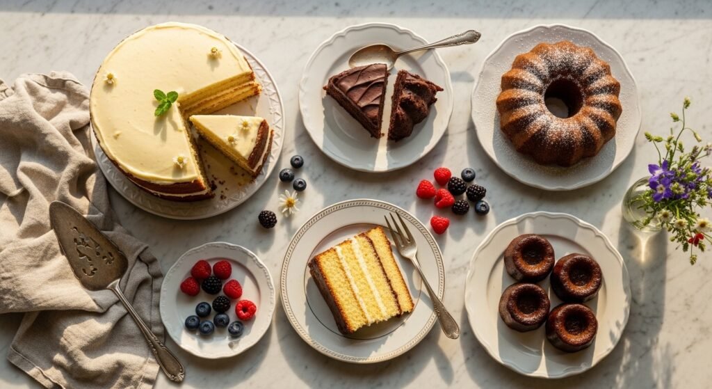 You’ll see familiar techniques and tools tossed in naturally—like using a KitchenAid stand mixer for silky buttercream or lining pans with parchment paper so cakes lift out cleanly. These cake recipes balance texture, flavor, and timing so you can be confident in the oven.
