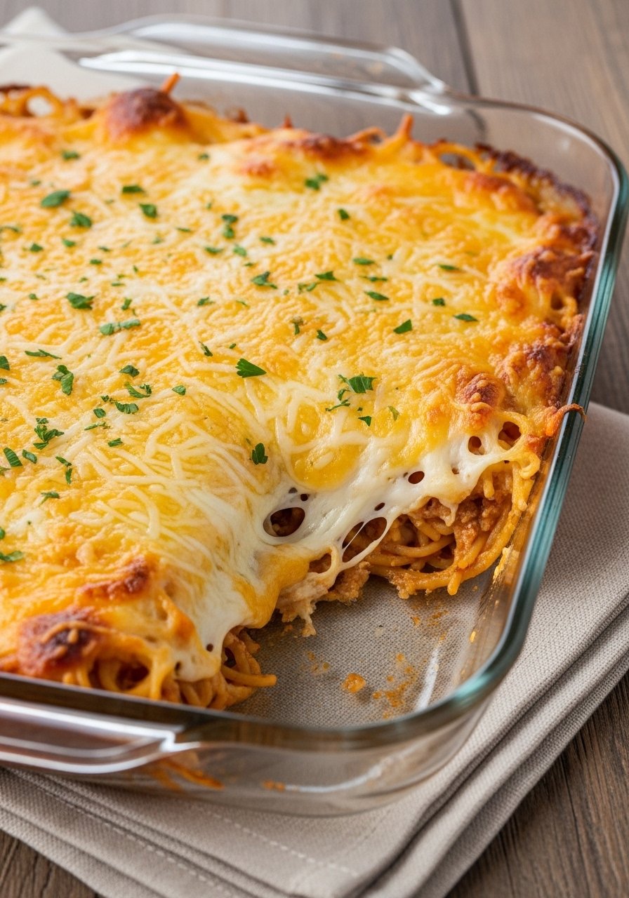 This Southern-style chicken casserole is melty, saucy, and easy to double for a party. It blends tender shredded chicken with sauced spaghetti and a blanket of cheddar for that gooey, comforting pull. It’s a crowd-pleasing weeknight winner when you want comfort without fuss.