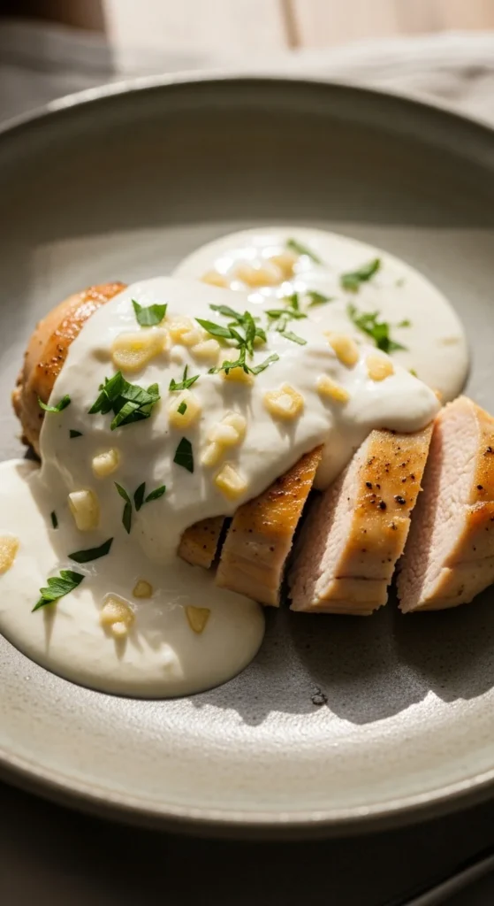 Yogurt keeps the chicken tender while adding gentle tang. Garlic brings depth without heaviness. This dish feels comforting and light at the same time.