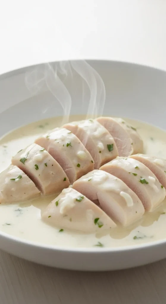 Coconut milk keeps the chicken soft and adds subtle richness. The flavor stays mild and comforting rather than sweet.