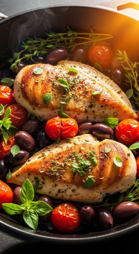This recipe brings bold, briny flavors together quickly. Tomatoes soften into a light sauce that keeps the chicken juicy.