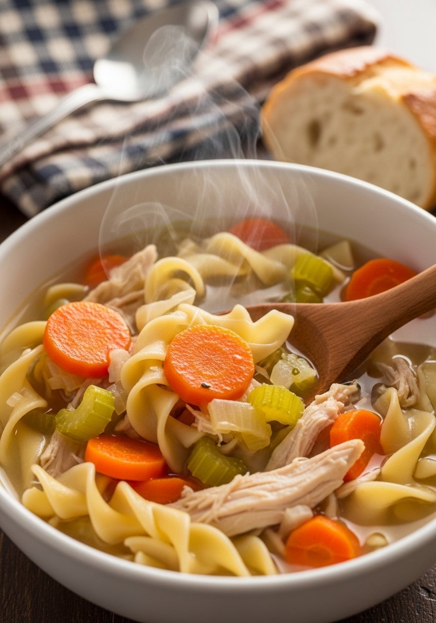 This chicken noodle soup is pure nostalgia: simmered for depth, shredded for texture, and finished with bright parsley. The broth is savory but not heavy, with tender chicken and slurpy egg noodles that soak up flavor. It’s perfect when you want something healing, simple, and ready in about an hour—ideal for anyone craving classic comfort.