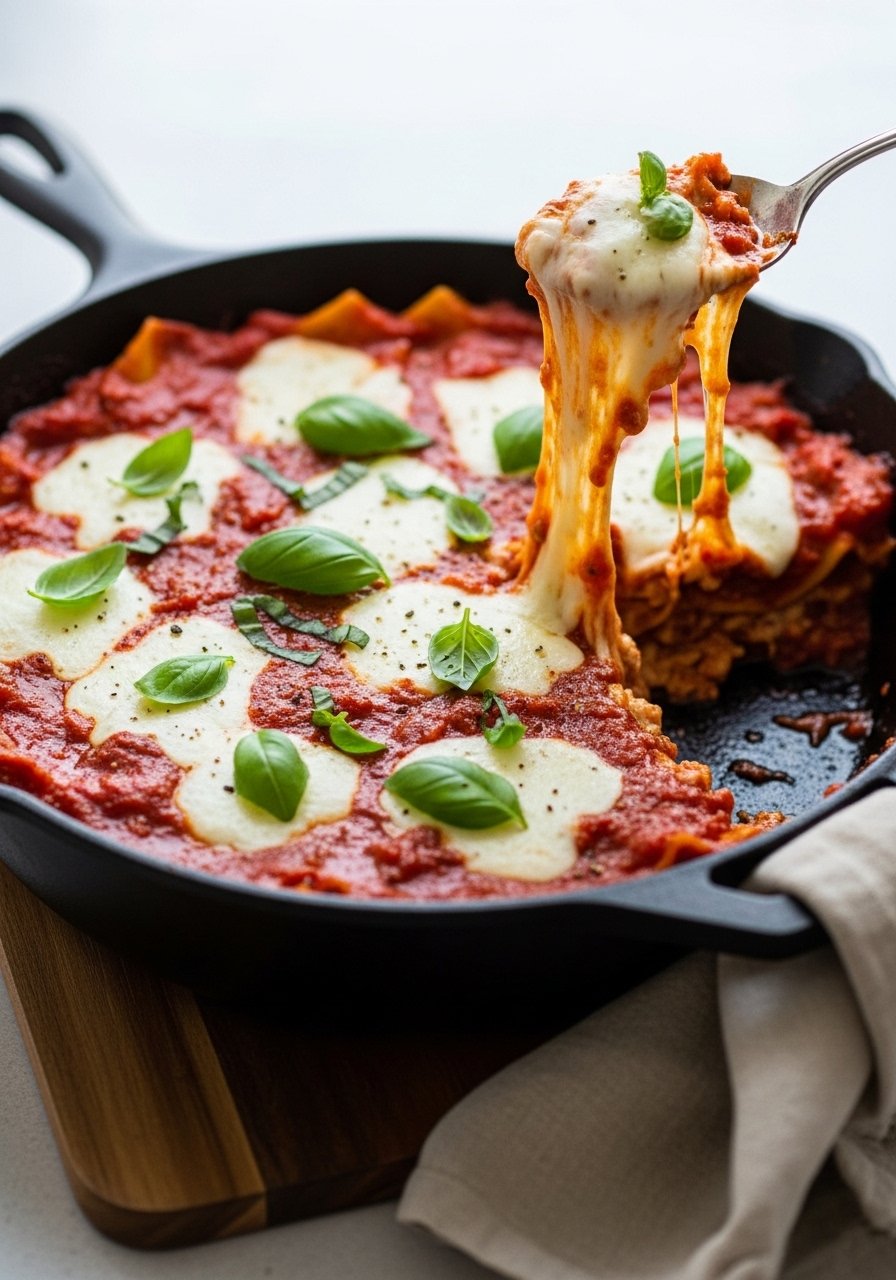 This one-pot lazy lasagna cuts the number of pans in half by cooking lasagna noodles right in the sauce. The noodles absorb the meaty marinara for deeply flavored layers without fuss. It’s creamy, cheesy, and perfect when you want lasagna without the day-long prep.