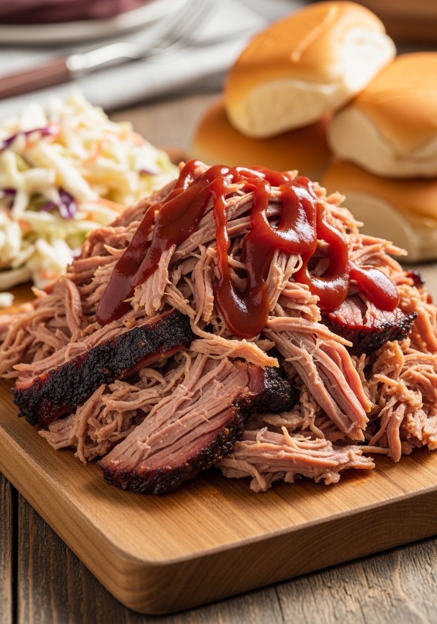 This pulled pork uses a straightforward Southern-style rub—sage, garlic, and onion powders—for deep, nostalgic flavor without fuss. Cook it low and slow until tender, then shred and serve on buns for that backyard comfort flavor indoors. The rub is forgiving and great on pork shoulder or pork butt.