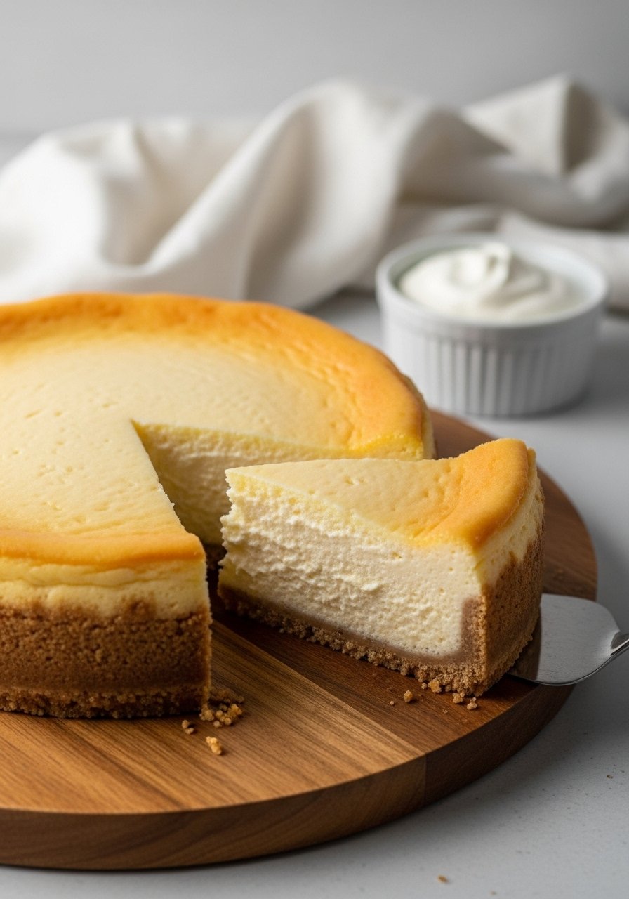 Dense, creamy, and tangy—this New York-style cheesecake is a timeless dessert recipe that holds its shape and slices beautifully. It’s smooth on the palate with a buttery graham crust and a bright finish from sour cream topping. People love it for birthdays or holiday feasts.