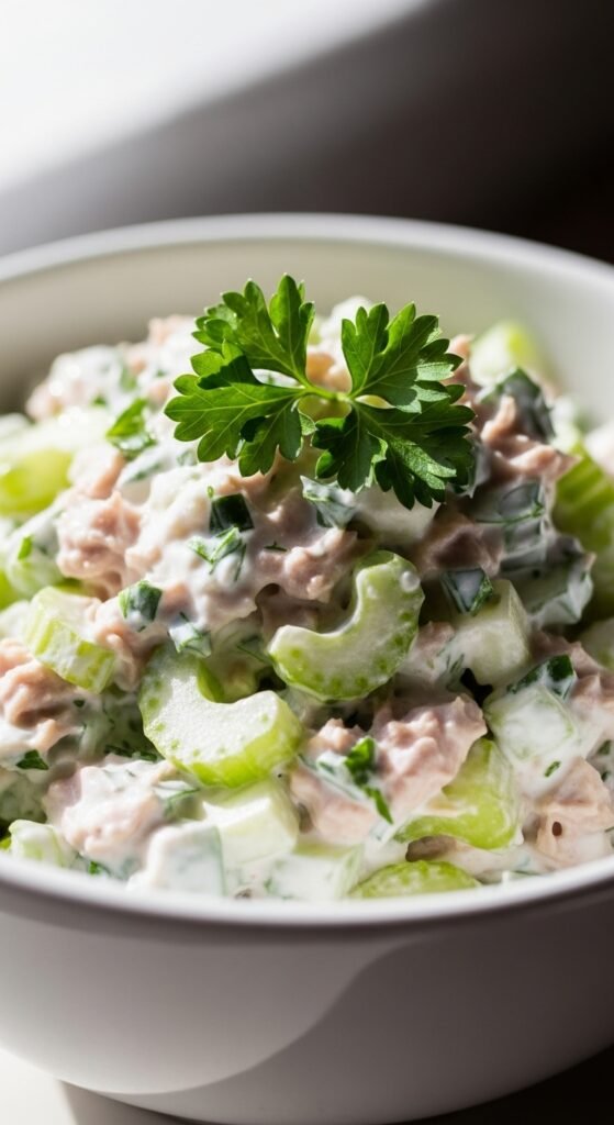 - Mix chicken, yogurt, celery, salt, and pepper.