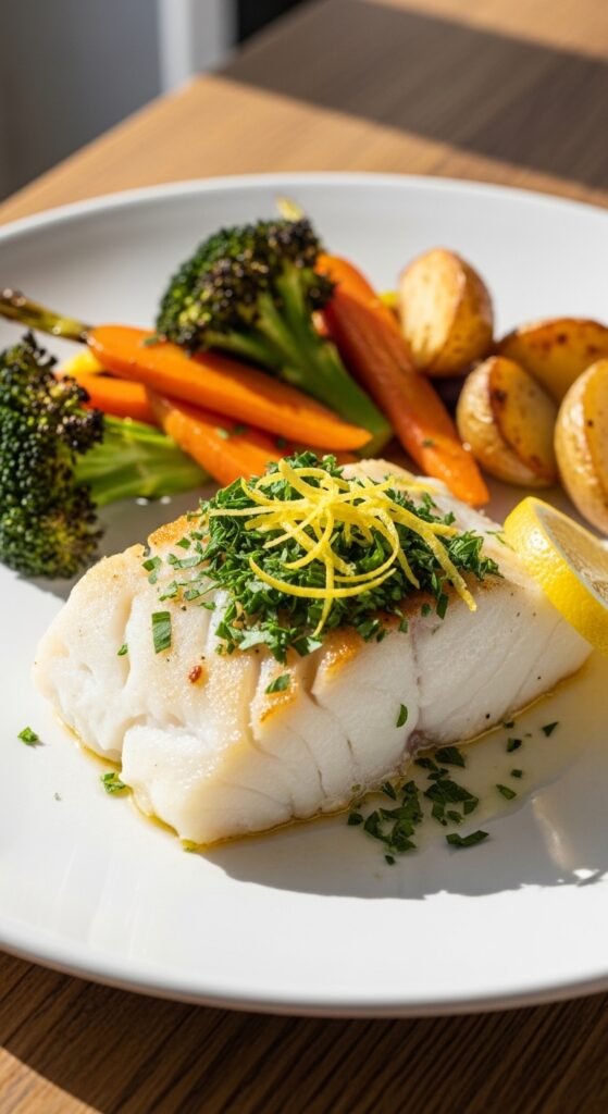 Baked cod is light, flaky, and packed with protein without being heavy. Garlic and herbs add depth of flavor while keeping the dish fresh. It’s a simple dinner option that cooks quickly and pairs beautifully with vegetables or grains.