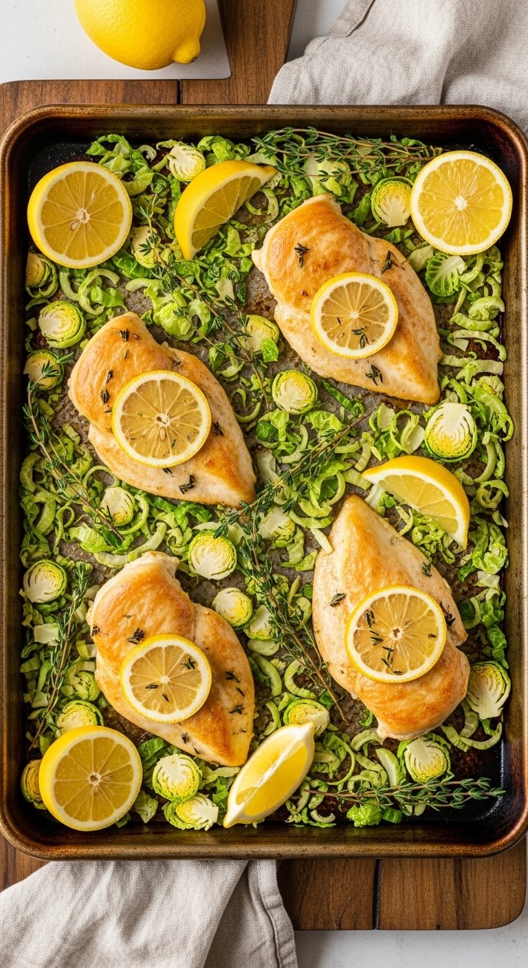 2. Lemon-Thyme Chicken with Shaved Brussels Sprouts (One-Pan High Protein Recipe)