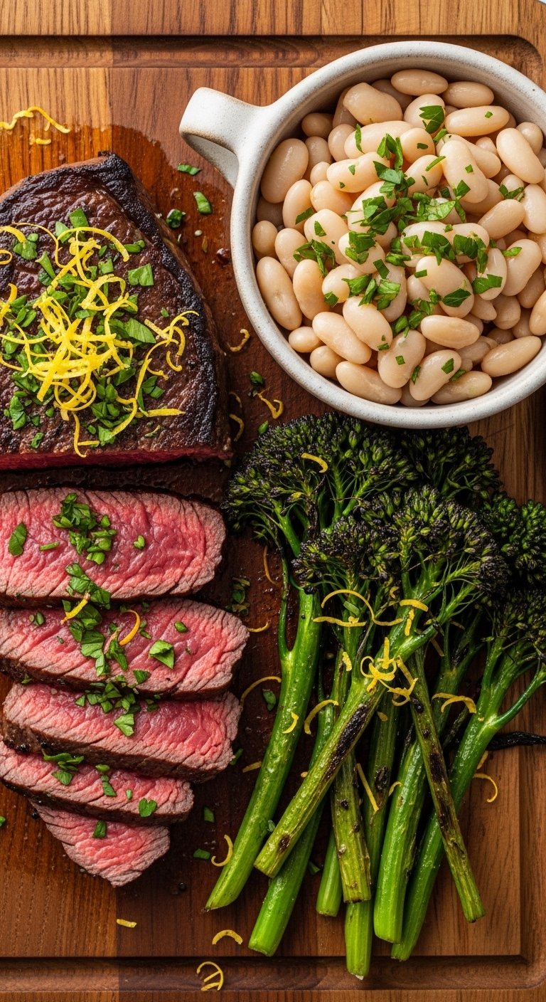 8. Steak with White Beans and Roasted Broccolini (Hearty High Protein Meal)