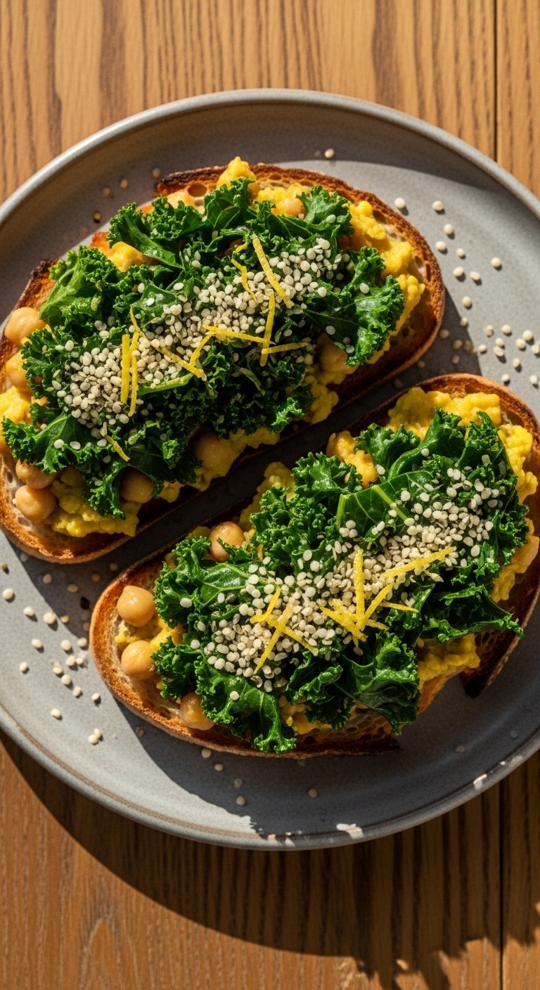 9. Kale & Chickpea Toasts (Plant-Forward High Protein Snack/Meal)