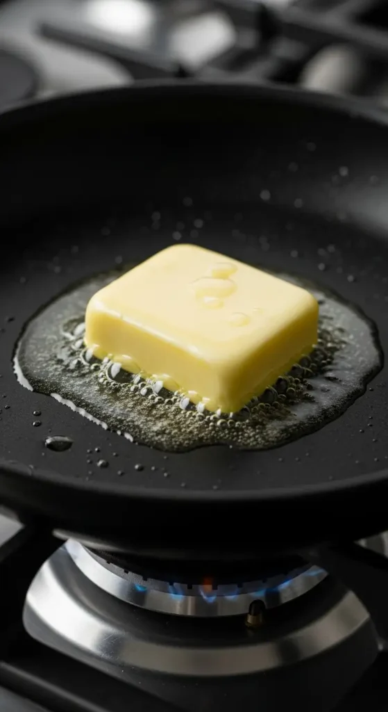 Place a nonstick pan over low heat and add butter. Let it melt slowly without browning.