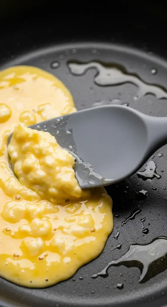 This is where most scrambled eggs go wrong. High heat cooks eggs too fast, forcing out moisture and leaving them dry. Soft, creamy eggs require gentle heat and patience.