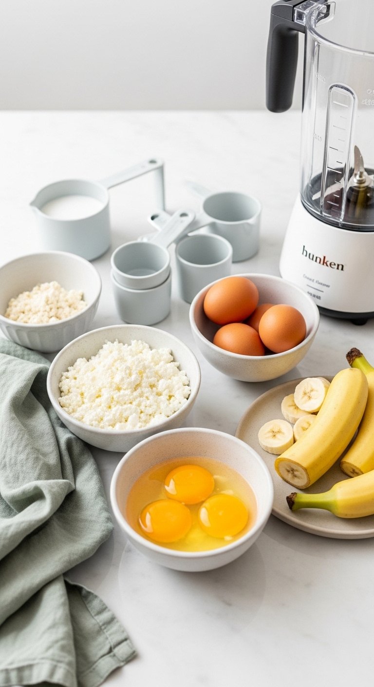 - Cottage Cheese Pancakes — blend 1/2 cup cottage cheese + 2 eggs + 1/3 cup oats for high-protein pancakes that stay fluffy.