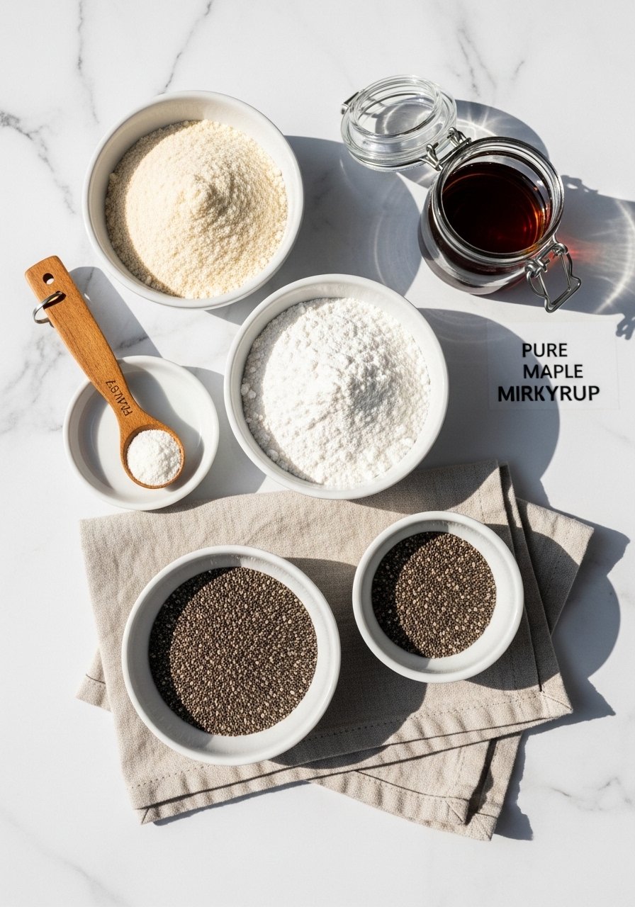Start by collecting the flours and binders that build structure, not dryness. Use this base ratio for pancakes or quick muffins: