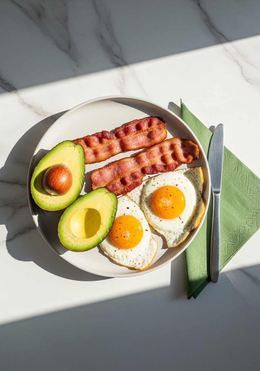 - Layer fat + fiber (bacon + avocado) for sustained fullness.