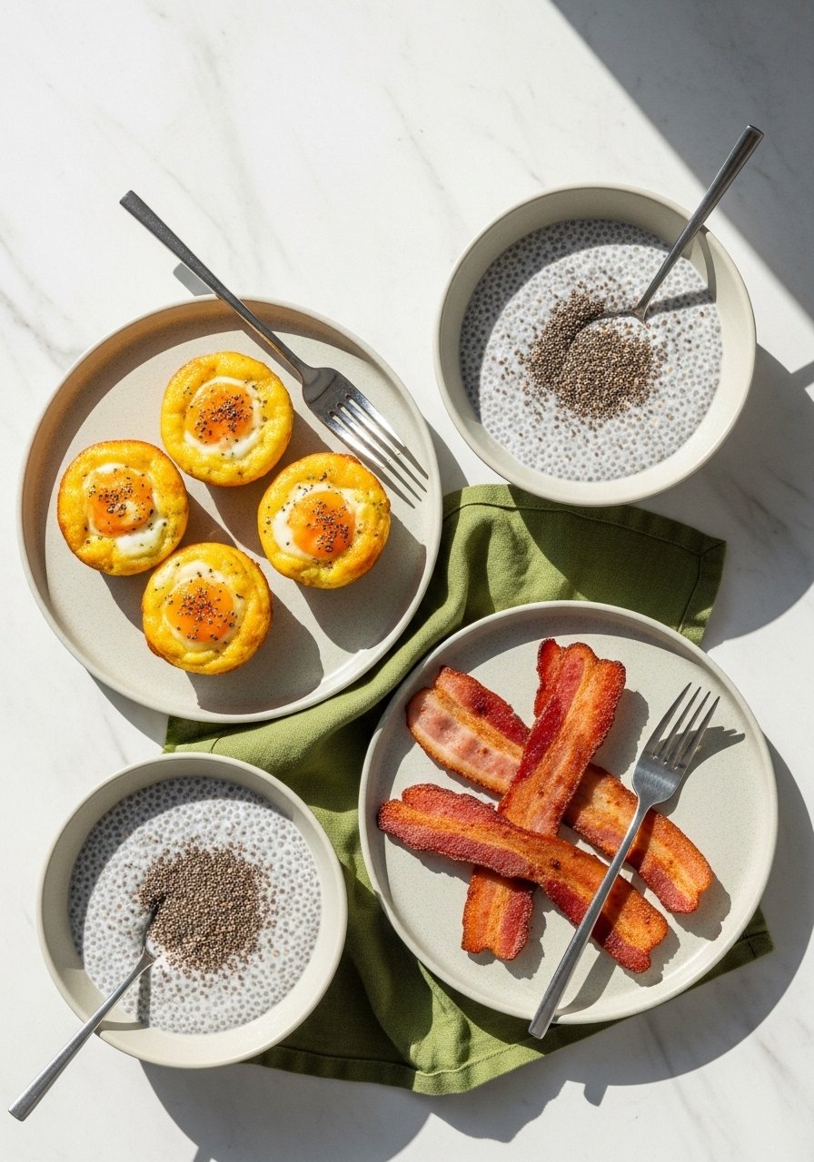 Batch-cook to beat morning rush. Keto egg muffins and one-pan skillets are perfect for meal prep.