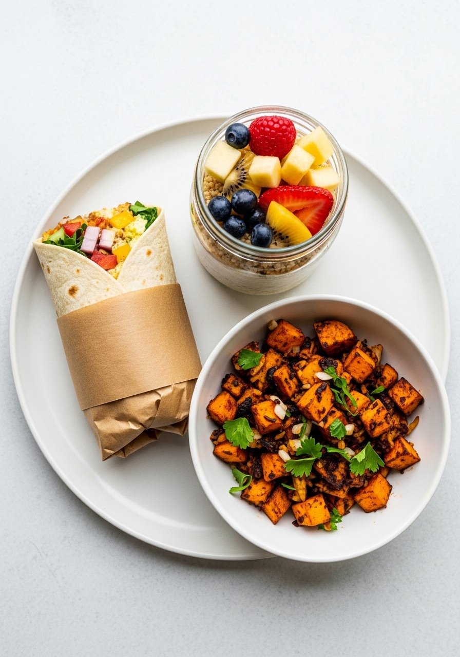 - Sweet potato sheet-pan hash: roast at 425°F for 25–30 minutes with black beans and tempeh bacon for hearty, freezer-friendly portions.