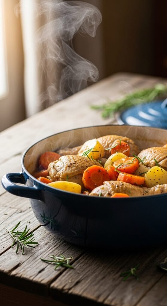 This final dish brings together simple vegetables and chicken in a single pot, creating a comforting meal that feels complete and satisfying.