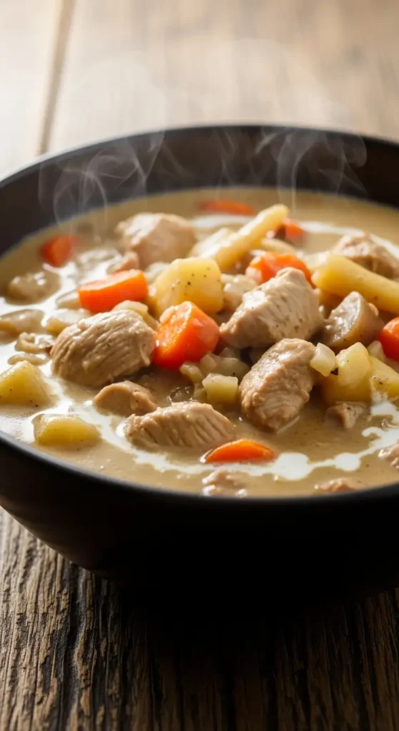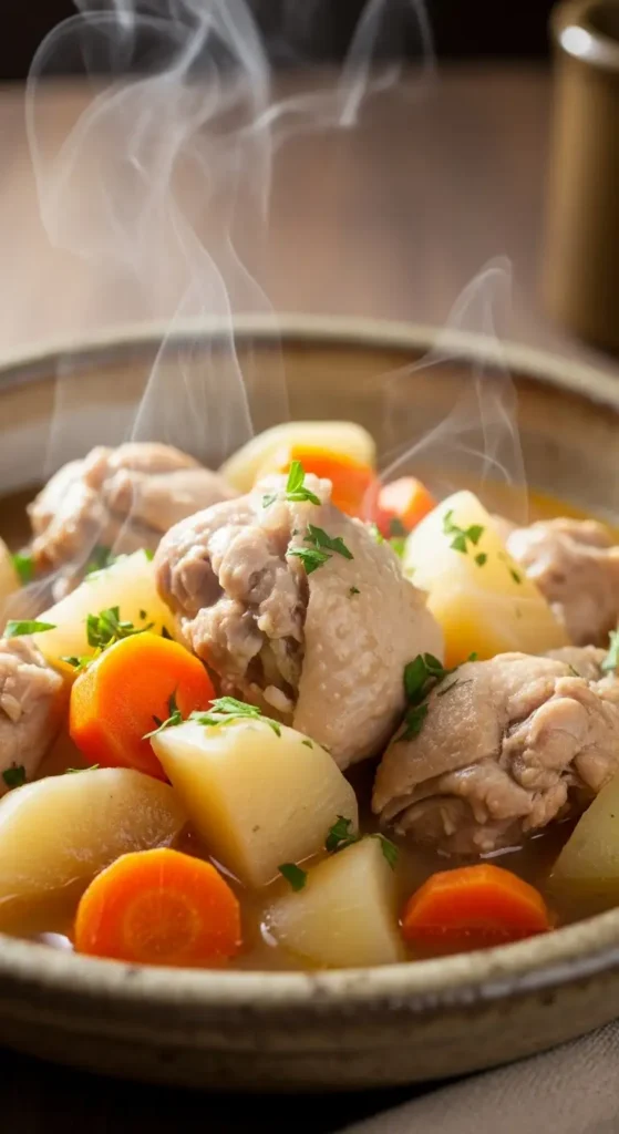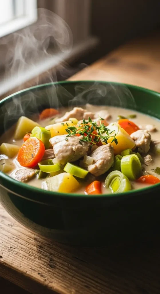 This classic stew is slow-cooked until the chicken is soft and the vegetables soak up every bit of the creamy broth, creating a dish that feels soothing and familiar with every spoonful. It’s simple, filling, and rooted in Irish home cooking traditions.