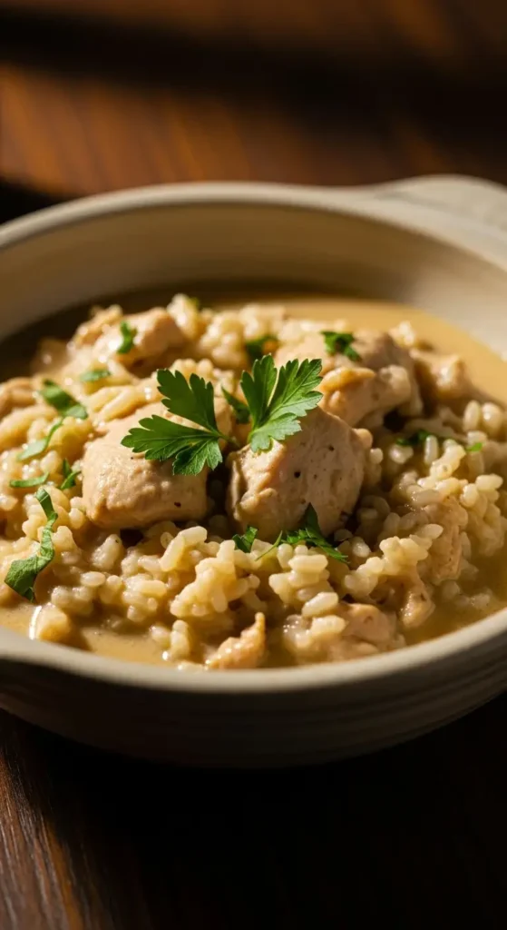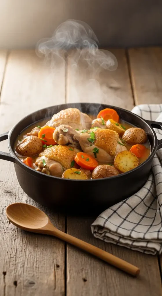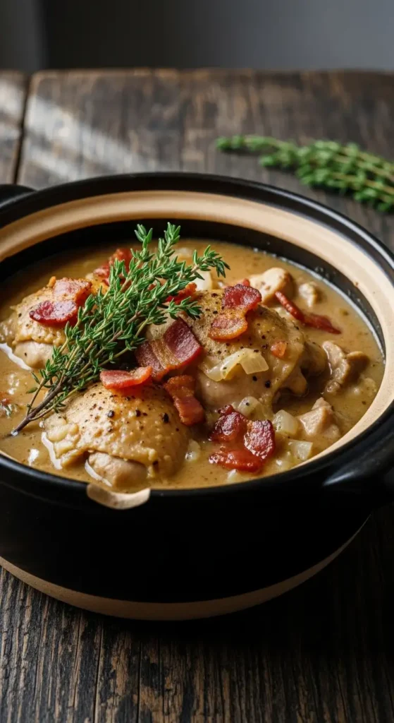 Chicken and bacon create a rich, savory pairing that feels indulgent yet familiar. This pot-style dish is cooked slowly so every bite carries depth and warmth.