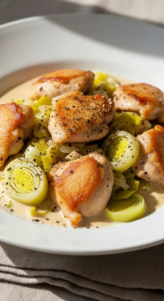 This dish brings together tender chicken and sweet leeks in a smooth, comforting sauce that feels rich without being heavy. It’s a favorite for relaxed dinners and works well with simple sides.