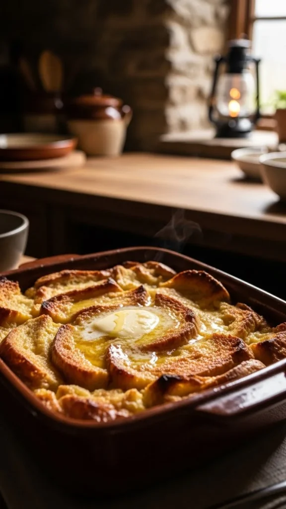 This dessert turns simple bread into something rich and comforting, baked until soft inside with a golden top.