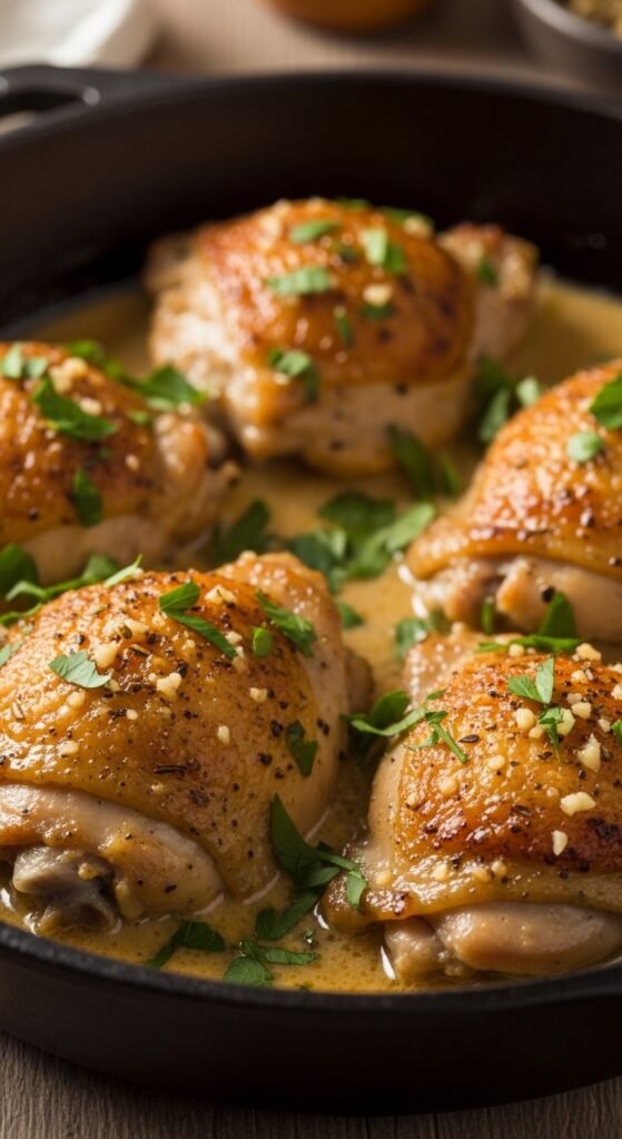 - Sear chicken skin-side down for 6–7 minutes until golden. Flip and cook 5 more minutes.