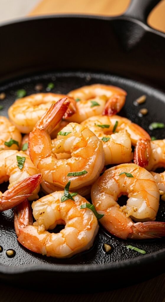 - Add shrimp and cook 2–3 minutes per side. Remove and set aside.