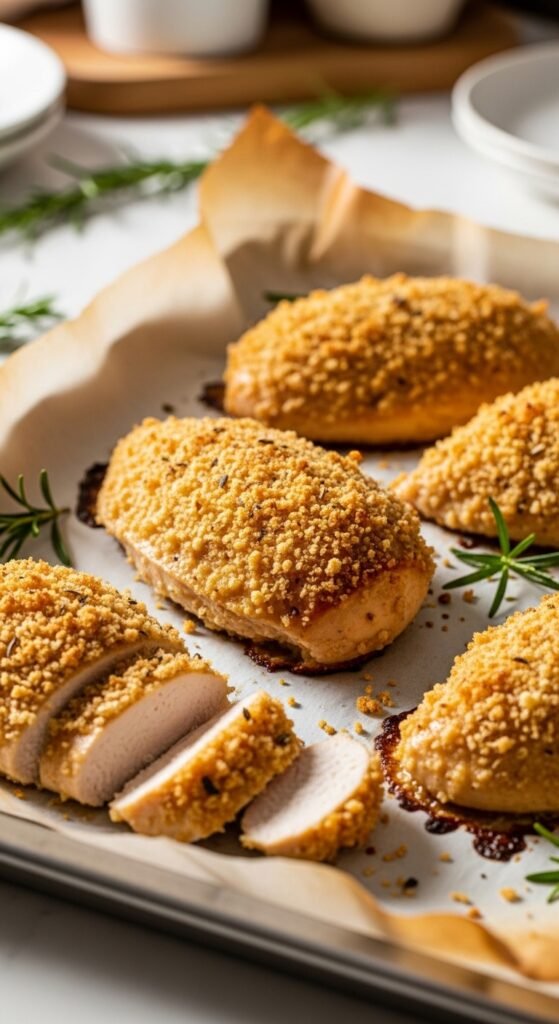 This recipe focuses on texture with a crisp parmesan coating. The chicken stays juicy inside while the outside turns golden. Baking keeps it simple and hands-off. It works well for family meals. Familiar flavors make it easy to enjoy.