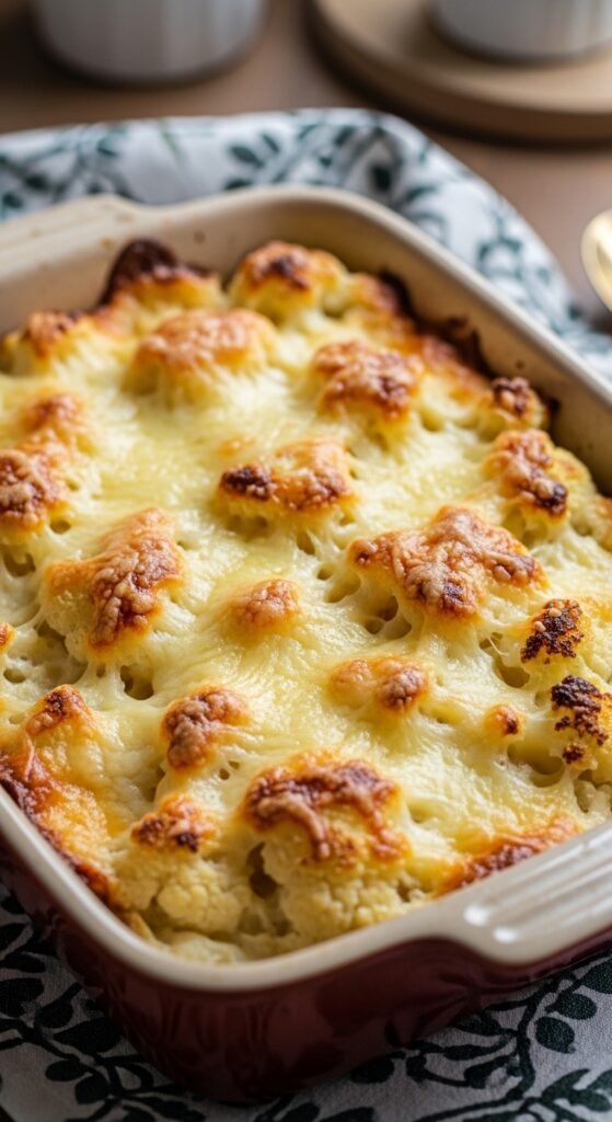 This dish delivers comfort through its creamy texture and mild flavor that works for picky eaters too. Cauliflower soaks up the cheese sauce beautifully, giving each bite depth without heaviness. It’s a dependable side or main that fits family meals. The baked top adds contrast and warmth. A great option when you want something oven-friendly.