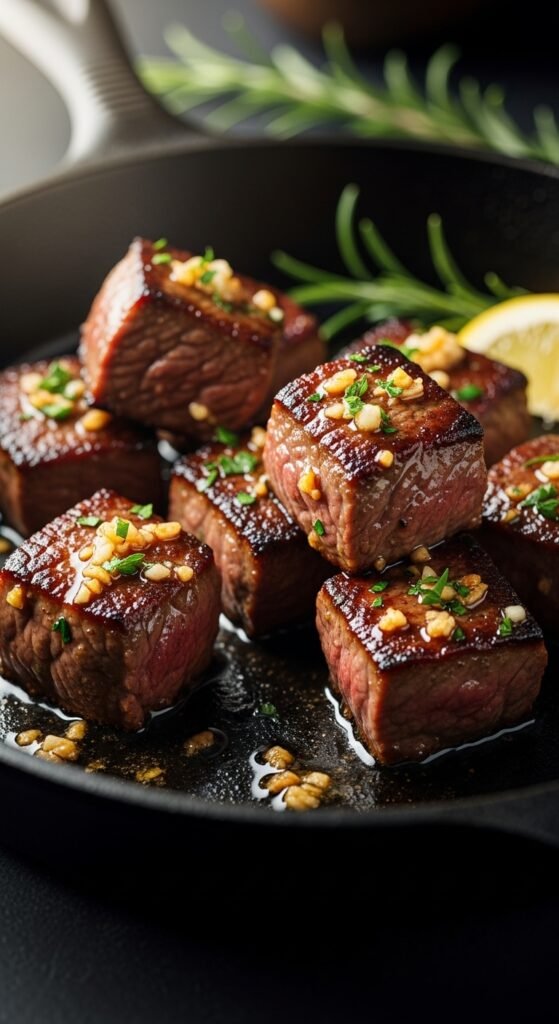 These steak bites cook fast and deliver bold flavor. Garlic butter coats each piece evenly. The texture stays tender and satisfying. It’s a simple dish that feels hearty. Great for quick dinners.