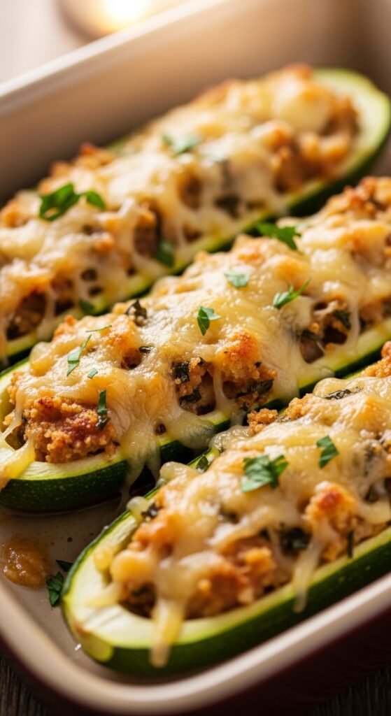 These zucchini boats bake up tender with a rich cheesy center. They hold filling well and feel hearty despite being light. Baking keeps preparation simple. It’s a flexible recipe that fits many meals. Great for dinner or side dishes.