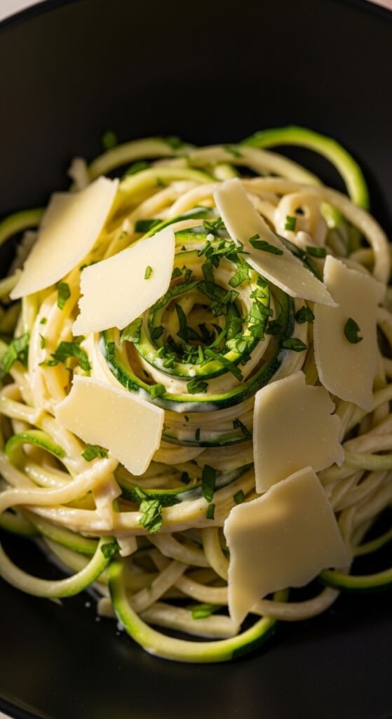 This recipe offers a pasta-style experience without heavy carbs. The sauce stays smooth and coats the noodles evenly. Zucchini keeps things light while still feeling comforting. It’s quick to prepare and suits busy evenings. The flavors remain classic and familiar.