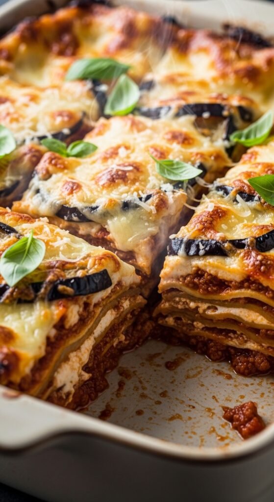 This dish replaces pasta with thin eggplant slices while keeping classic comfort flavors. Layers hold together well and feel hearty. The cheese melts evenly, giving structure and richness. It’s great for meal prep or family dinners. Familiar taste without carb overload.