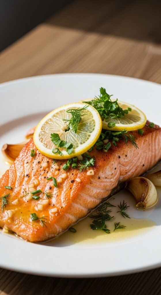 Serve hot with roasted vegetables. Add lemon slices on the side. Fresh herbs work well as garnish. Leftovers reheat nicely in the oven. Suitable for all seasons.