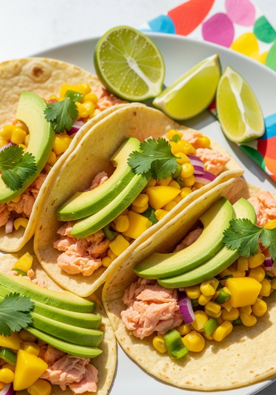 6. Build tacos with salmon, salsa, avocado, and a squeeze of lime.