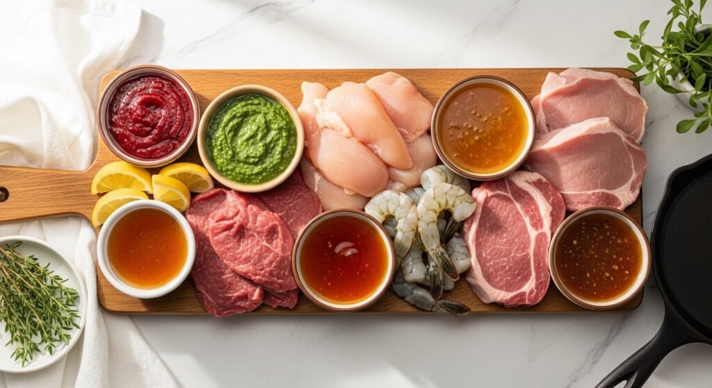 Below you’ll find 12 tested marinades for everything from quick weeknight chicken to long-simmered brisket. Each recipe lists exact measurements, realistic marinating times, and cooking notes so you get consistent results. Grab a digital kitchen thermometer to check doneness and a cast iron skillet for searing when the recipe calls for a hot finish. Pin the ones you love and start with a marinade that matches the meat and time you have—some need only 30 minutes, others improve overnight.