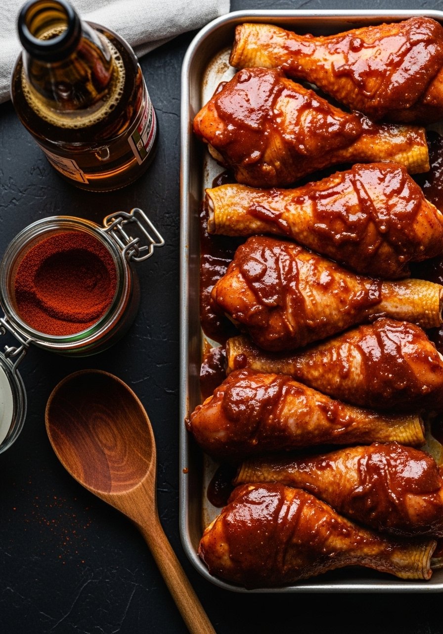 This beer-BBQ marinade adds deep, malty flavor and sticky caramelization—perfect for ribs, drumsticks, or pulled pork. Use a darker beer for richer notes or a lighter lager for brightness. It works beautifully in a slow cooker for fall-apart tenderness.