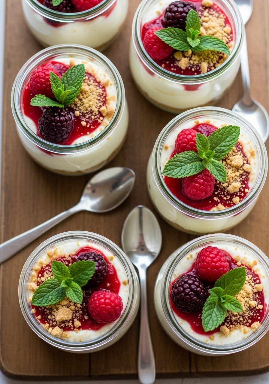 These cheesecake cups give all the tangy richness of baked cheesecake with a silky, mousse-like texture. They’re portion-controlled, elegant for gatherings, and you can layer fruit or chocolate between spoonfuls.