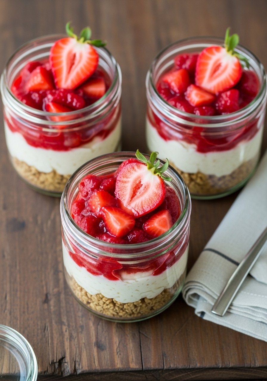 5. No-Bake Strawberry Cheesecake Jars (Vegan Option)