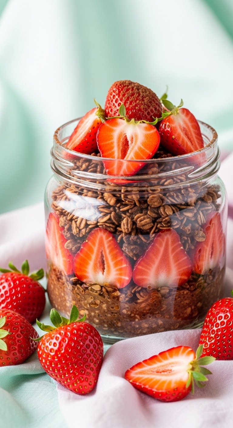 - Assemble jars without toppings and add strawberries right before eating to avoid sogginess.